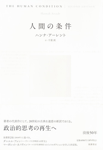 本書は、2025年に没後50年となる著者が1958年に発表した代表作『THE HUMAN CONDITION』の英語第2版(2018年)の新訳。労働(labor)、仕事(work)、活動(action)という三つの行為様式から、人間を人間たらしめる条件を、西欧思想史を踏まえながら詳細に分析し、独自の政治理論を展開している。三つの行為様式の中でも「活動」は、唯一、直接的に(事物を介さず)人と人との間で行われるものであり、「言論」を媒介して自己のアイデンティティを開示することで新しいことを始めるものだ。著者のハンナ・アーレント(1906-75)は、米国の政治理論家、思想家。ドイツの同化ユダヤ人家庭に生まれ、1933年にナチスの迫害を逃れてフランスへ、1941年には米国に亡命した。他の著書に『全体主義の起原』『過去と未来の間』『エルサレムのアイヒマン』『精神の生活』などがある。