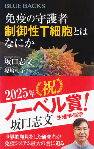 ノーベル賞授賞発表の5年前に刊行された本書では、坂口志文氏自らが、Tレグ発見に至る研究のプロセスや、Tレグが体内で機能するメカニズム、そしてこの分野の基礎医学及び臨床医学研究の最前線を、わかりやすく語っている。人体の免疫系は、ウイルスなどの異物を排除する免疫細胞と、その働きを抑制するTレグが互いにバランスをとりながら、体を病気から守り、恒常性を保つ働きをしている。疾患の原因に合わせ、Tレグを増やす、あるいは減らすなど、効果的な治療法が模索されているという。著者の坂口氏は大阪大学免疫学フロンティア研究センター特任教授。京都大学再生医科学研究所教授、同研究所長などを経て2016年から現職。塚﨑朝子氏はジャーナリスト。読売新聞記者を経て、医学・医療、科学・技術分野を中心に執筆多数。