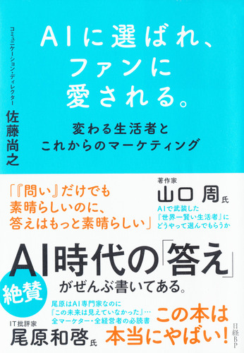 本書では、AI時代に生活者とマーケティングがどう変わるか、そしてこれからの企業やブランドはその変化にどう対応すべきかを、独自のフレームワークやシミュレーションなどを交えながら、具体的にわかりやすく解説。AIと一心同体のように生き、AIの卓越した知能や情報収集・分析能力を活用する生活者を著者は「世界一賢い生活者」と呼ぶ。そんな状況でのマーケティングの切り口には、AIに選ばれる「AIルート」と、ファンに愛され続ける「ファンルート」の二つがあるという。著者は(株)ファンベースカンパニー創業者/取締役会長。大手広告会社でのクリエイティブ・ディレクターを経て2011年に独立し現職。災害支援団体、患者団体、コーチング団体などの代表も務める。